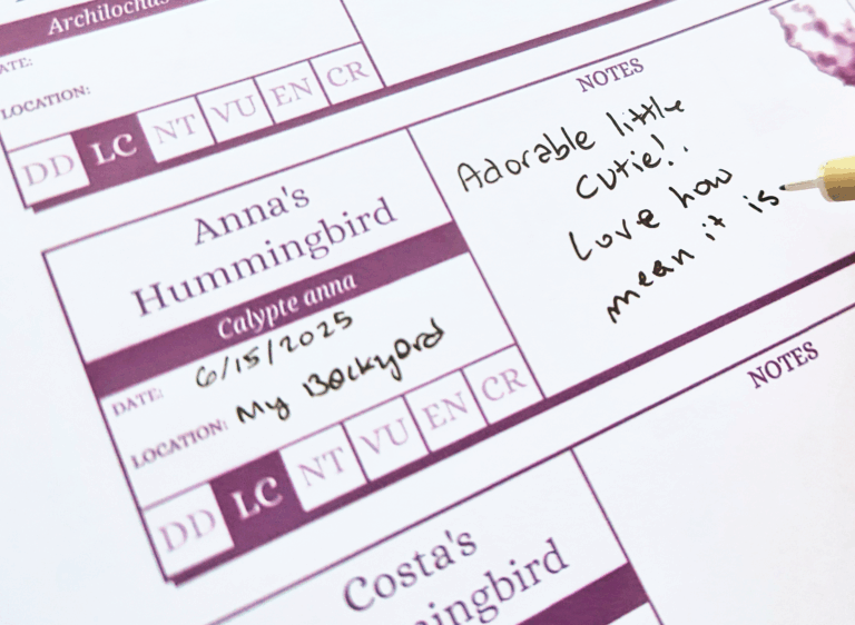 Each species has a designated area for sighting notes, so you can keep track of any interesting observations you see in the field. There are also spaces designated to date and location to document your first sighting of each bird species.