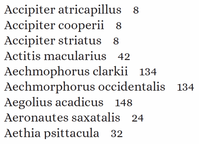Sometimes common bird names change. Sometimes bird species get split or combined. This can make birding difficult, as references can become outdated. We did our best to cover our bases by providing both a common name index and a scientific name index, the latter being sorted alphabetically by genus. Hopefully this will help you more easily find the bird you’re looking for!